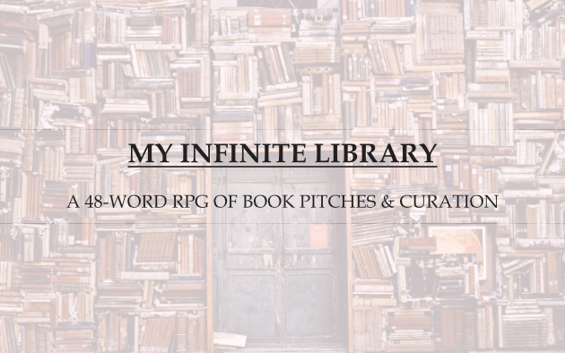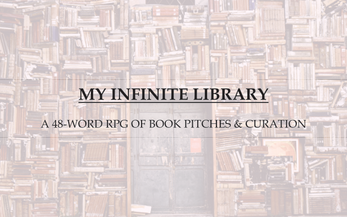 My Infinity Library is part of the 48-Word RPG Jam. It is meant to be one part RPG (of both writing a book and curating your personal, endless library), one part RPG tool (to create titles for books to scatter in-game), and one part thought exercise when dealing with writer's block.